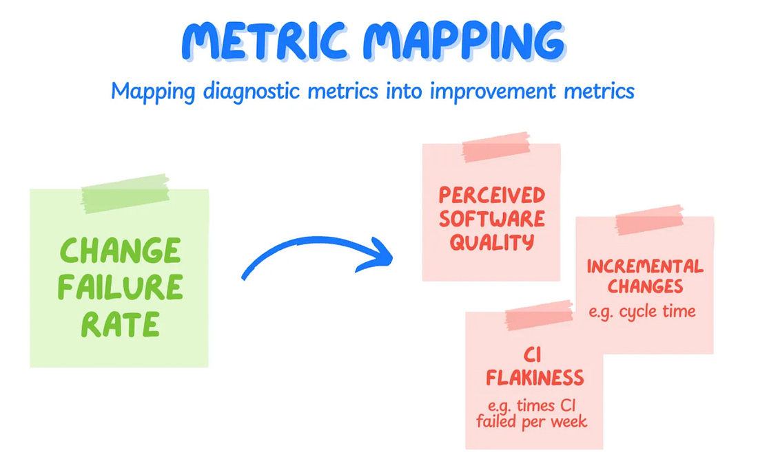 This adaptability is chaotic but potentially powerful, and our API design can take advantage of it. Recent work by Pol Avec on AI agent error handling shows how descriptive error messages drive faster agent recovery than minimal machine-formatted responses. And Stytch found that APIs optimized for AI agents often work better for human developers too. Traditional error response: AI-optimized error response: The difference? The AI can actually act on this information. It might retry with the correct format, try the alternative endpoint, or explain the issue to the user. So this is not just reporting errors — it is enabling recovery. We explored how API design changes with AI in this recent piece 👇 3) 📊 Map metrics into actionable dataMany teams struggle at using engineering metrics because they seem too high-level. You can get from a big-picture diagnostic metric to an actionable improvement metric through a process called metric mapping: