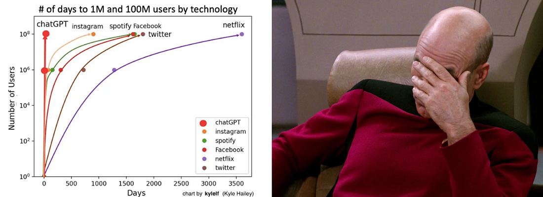 1 As is so often the case, fortuitous timing played a big role in the success of the essay. It was released two weeks after AI 2027, but this was purely by coincidence — our publication date was actually based on the Knight Institute symposium on AI and Democratic Freedoms. We are grateful to the Institute for the opportunity to publish the essay. 2 Mental health issues with chatbots in general, and problems such as addiction, have been widely recognized and discussed, including in our book AI Snake Oil. These tend to be based on an analogy with social media. But it's one thing to anticipate the potential for mental health impacts, and another to predict specifically what impacts might emerge and how to avoid them. 3 That said, we acknowledge that our whole thesis might be wrong, and it is more likely that we’re wrong if RSI is achieved. 4 The framework is adapted from the classic diffusion-of-innovations theory and also influenced by recent writers such as Jeffrey Ding who have analyzed geopolitical competition in AI through the lens of the innovation-diffusion gap. 5 While there are risks even here, we think it is definitely an application that doctors should be exploring. 6 In fact, there have been other apps whose initial growth was as fast or faster than ChatGPT, such as Pokemon Go and Threads (which bootstrapped off of Instagram and thus wasn’t reliant on network effects). But again, our bigger point is that this type of comparison is not informative. Threads ended up being something of a dud despite that initial growth. 7 Frankly, the far more impressive stat in this graph, in our view, is Instagram getting to a million users in only 2.5 months despite the need for network effects — considering that it was back in 2010 when phone internet speeds were much lower, the app was iPhone only (!), and mainly spread among 18-34 year olds in the United States in the early days. |