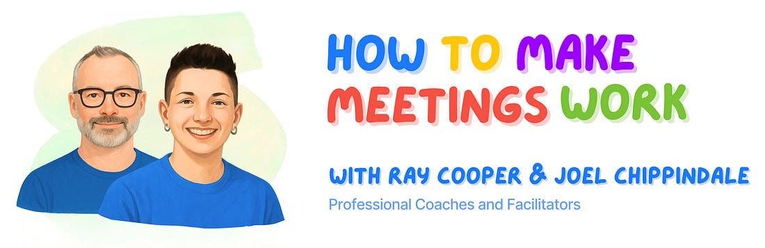 Too many team meetings are boring, uncreative, and wasteful. Disagreements are avoided, a few voices dominate, and energy and enthusiasm are drained. As a result you get confusion, wasted effort in the short term, and an erosion of trust and motivation in the long run. I believe this is an area that remote work made worse. Zoom calls are a poor, lesser version of in-person meetings: they are more draining, less engaging, and generally harder to run well. As a result, meetings today have a sketchy reputation (to say the least) among engineering teams, with many people capitulating to either 1) bad meetings, only good as meme material, or to 2) using async comms for most interactions. It doesn’t have to be that way. Meetings can be good: they can be spaces where people align on goals, build trust, unlock creativity, and move forward with clarity. But how do you get there? One of the key elements that separates a successful meeting from a dreadful one is good facilitation. Chances are you have already experienced it in the past: think of a well-run workshop you attended, or a meeting that actually works, where there is a clear agenda, the owner goes through the various steps, everyone speaks their mind, and the whole thing works like clockwork. How good did that feel? But also, how rare is that? The good news is facilitation can be learned, and there exist plenty of methods and techniques you can adopt to make your meetings more engaging and effective. To explore this, today I am bringing in Ray Cooper and Joel Chippindale, two of the most knowledgeable coaches and facilitators I know. They run a full program on how to make meetings work, where people learn these skills alongside peers — you should check it out! (As a Refactoring sub you also get $60 off by using the code REFACTORING50) In this article they will explore some of the reasons why groups should come together for conversations, and will share some practical tools you can start using right away. Here is the agenda: